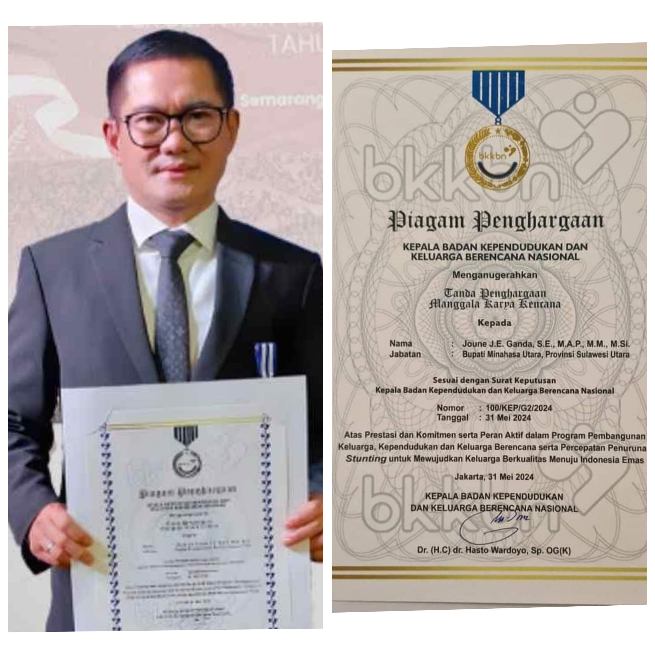 “Dengan kerja keras dan kolaborasi yang baik, Bupati Joune Ganda dan timnya berhasil mencapai prestasi luar biasa dalam memajukan kesejahteraan masyarakat di wilayah tersebut, serta secara aktif terlibat dalam mengimplementasikan program-program yang bertujuan untuk mempercepat penurunan angka stunting di Minahasa Utara,” ujar Kepala Badan Kependudukan dan Keluarga Berencana Nasional.