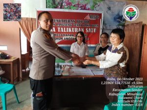 MINAHASA, SULLUTPOSTonline.id – Sebanyak 44 Keluarga Penerima Manfaat (KPM) Desa Talikuran Satu Kecamatan Sonder Kabupaten Minahasa Provinsi Sulawssi Utara menerima Bantuan Langsung Tunai (BLT) Dana Desa.