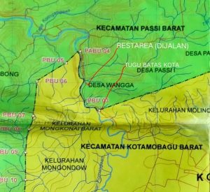 “Kalau kita melihat lampiran peta, titik lokasi dimana Tugu Selamat Datang dibangun adalah Pilar Batas Utama atau PBU 03, yang masuk wilayah Kotamobagu. Setelah area Tugu yaitu arah ke Desa Lobong, batas wilayahnya dipisahkan melalui Sungai Katulidan, sebelah kiri sungai adalah wilayah Kotamobagu hingga ke Pilar Acuan Batas Utama (PABU) 04 di pertigaan jalan ke arah Desa Wangga, Kecamatan Passi Barat,” ucap Ivone.