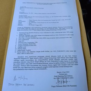 Kabarnya juga, Seminggu yang lalu pada 6 Juni 2024, ahli waris Poppy Paramata, telah menyurati pihak PT Bank SulutGo (BSG) Cabang Kotamobagu, yang bunyi isi surat nya tidak lain untuk meminta berkas Foto Copy kredit milik ayah nya (debitur-OLIL PARAMATA) tersebut, agar bisa di serahkan oleh pihak bank, di karenakan pinjaman kredit ayahnya telah LUNAS.