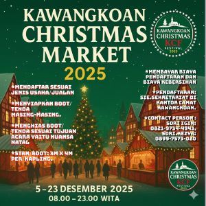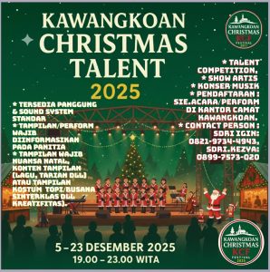MINAHASA SULUT POST – Dalam rangka menyambut dan memeriahkan perayaan Natal tahun 2025, Ketua Panitia Pelaksana Kawangkoan Christmas Festival 2025 (KCF) *Stefen Supit, SH* secara resmi mengumumkan pelaksanaan rangkaian kegiatan spektakuler yang akan digelar pada 5–23 Desember 2025 mulai pukul 19.00–23.00 WITA.