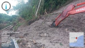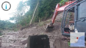 BOLSEL-SULUTPOST-Balai Pelaksanaan Jalan Nasional (BPJN) wilayah 1 Provinsi Sulawesi Utara, Minggu 7 Juli 2024, menurunkan tim beserta alat berat excavator di lokasi bencana alam yang terjadi di Kecamatan Posigadan, Kabupaten Bolaang Mongondow Selatan (Bolsel-red).