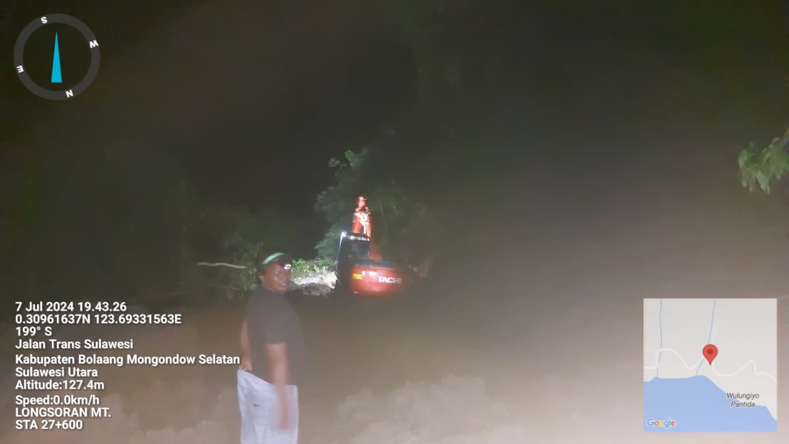 “Hingga malam ini alat berat masih terus bekerja memindahkan tumpukan matrial longsor, semoga cuaca juga bisa bersahabat dan evakuasi tumpukan tanah dan batang pohon yang roboh bisa tuntas,”kata PPK ruas jalan 2.6 Bolsel.