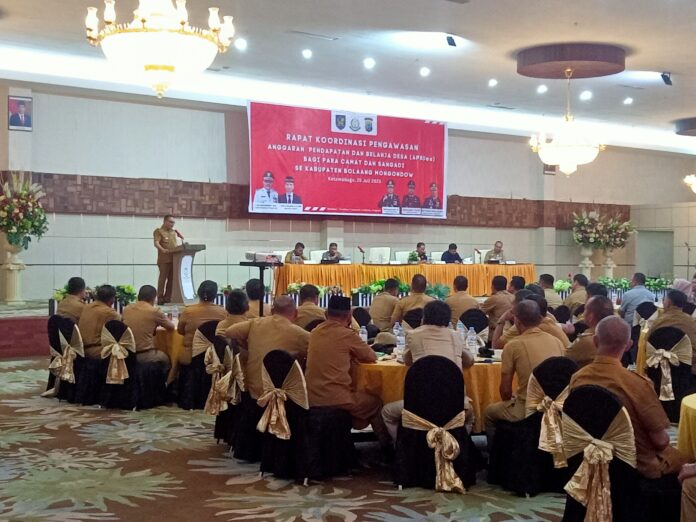 BOLMONG,SULUTPOST-Penjabat Bupati Bolmong Ir Limi Mokodompit MM meminta kepada para sangadi untuk mengelola Anggaran Pendapatan dan Belanja Dasa (APBDes) dengan penuh kehati-hatian. Hal ini dikatakan Bupati Limi saat membuka rapat koodinasi (Rakor) APBDes dengan para camat dan sangadi di Hotel Sutanraja Kotamobagu, Selasa (26/7) pagi.