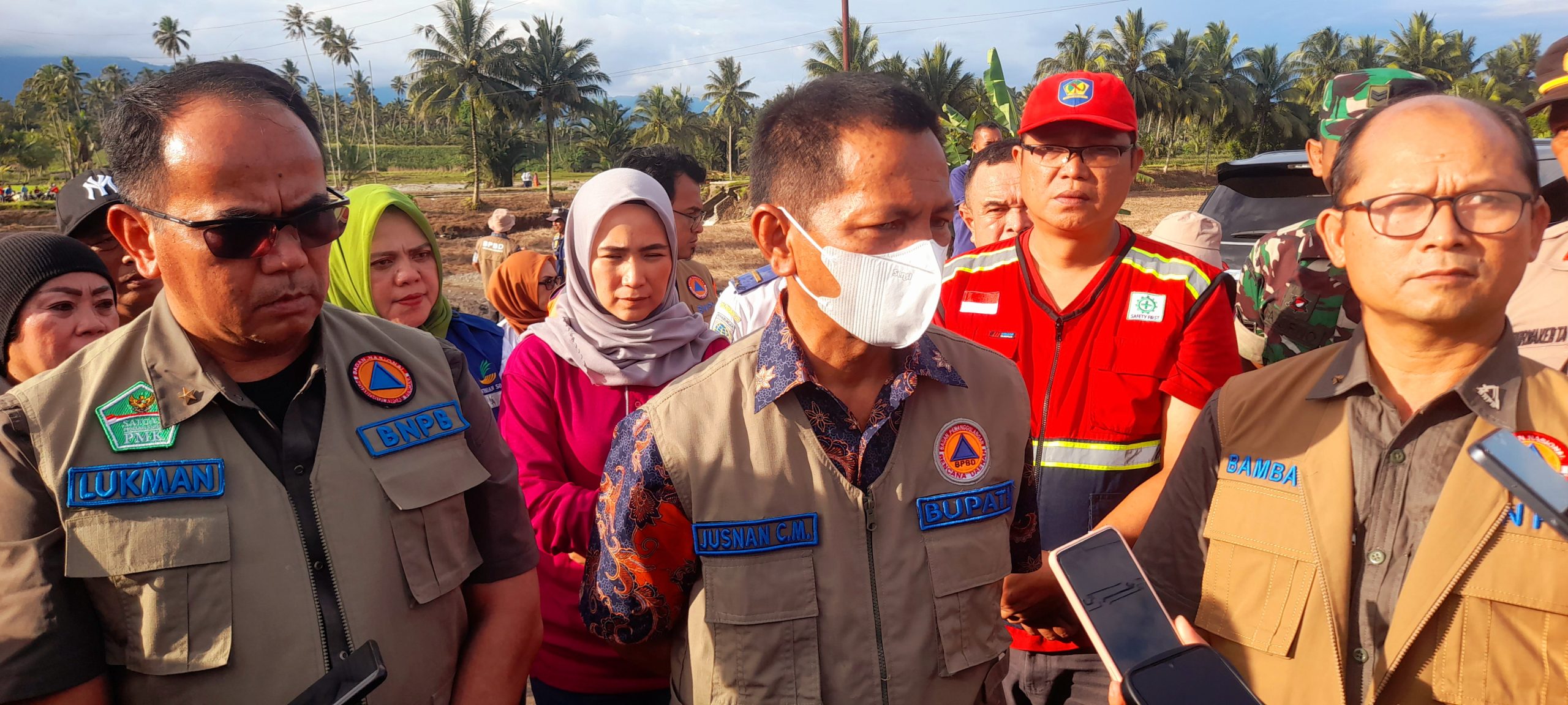 Kunjungan kerja tim BNPB pusat ini, di pimpin langsung oleh tenaga ahli Brigjen TNI Lukmansyah, didampingi Brigjen TNI Bambang Eko Pratolo, Kasubdit dukungan pengerahan logistik dan peralatan Tono Sumarsono, penata penanggulangan bencana ahli pertama Fuad Tasman, serta analis bencana Teguh Pratama.