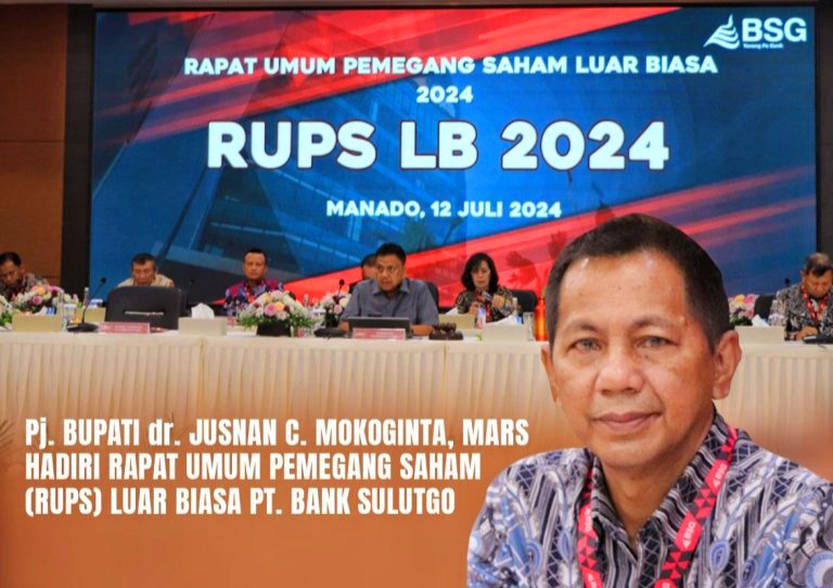 BOLMONG,SULUTPOST-Pj. Bupati Bolaang Mongondow dr. JusnanC. Mokoginta, MARS, menghadiri Rapat Umum Pemegang Saham (RUPS) Luar Biasa PT. Bank Sulutgo yang dilaksanakan hari ini, Jumat (12/07/2024) bertempat di Ballroom Kantor Pusat BSG di Manado.