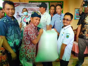 BOLMONG,SULUTPOST- Penjabat Bupati Bolaang Mongondow dr. Jusnan C Mokoginta, MARS, menghadiri kegiatan gerankan pangan murah, sekaligus menyerahkan bantuan pangan berupa beras kepada masyarakat.