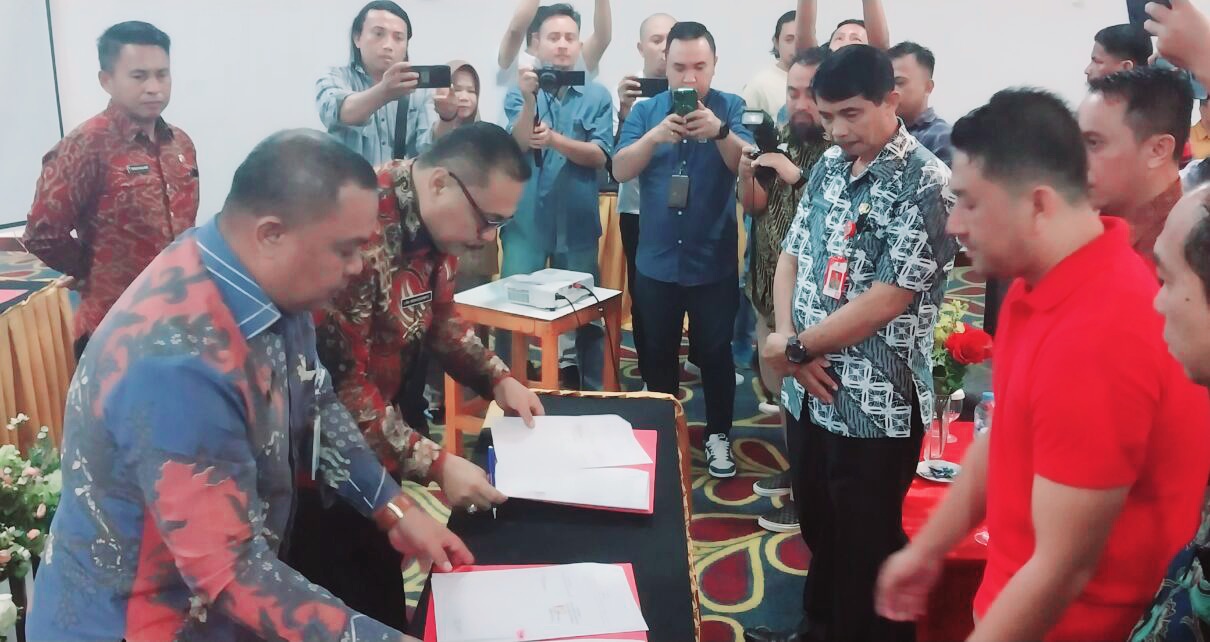 Kegiatan Penandatanganan tersebut, turut juga di dampingi oleh Sekretaris Daerah (Sekda) Tahlis Galang SIP MM, yang di gelar tepatnya di Hotel Sutanraja Kotamobagu.