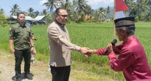 Dalam kesempatan itu juga, Bupati Ir.Limi Mokodompit MM, menyerahkan bantuan beras secara simbolis kepada masyarakat.