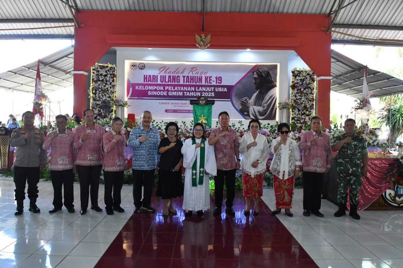 MINSEL SULUT POST – Bupati Minahasa Selatan Franky Donny Wongkar, S.H., menghadiri Ibadah Raya Hari Ulang Tahun ke-19 Kelompok Pelayanan Lanjut Usia Sinode GMIM Tahun 2025, bertempat di Aula Waleta Kantor Bupati Minahasa Selatan, Pada Jum,at 7 Nofember 2025.