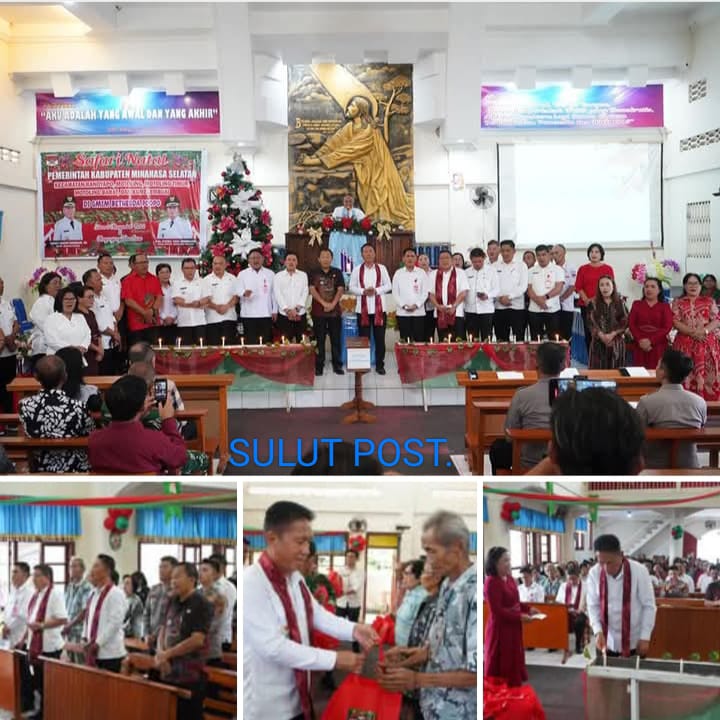 MINSEL, SULUT POST – Bupati Minahasa Selatan Franky Donny Wongkar, SH., pimpin Ibadah Safari Natal Pemerintah Kabupaten Minahasa Selatan di Kecamatan Ranoyapo, Kecamatan Motoling, Kecamatan Motoling Barat, Kecamatan Motoling Timur dan Kecamatan Kumelembuai, bertempat di Gereja GMIM Bethesda Poopoh, Kecamatan Ranoyapo.