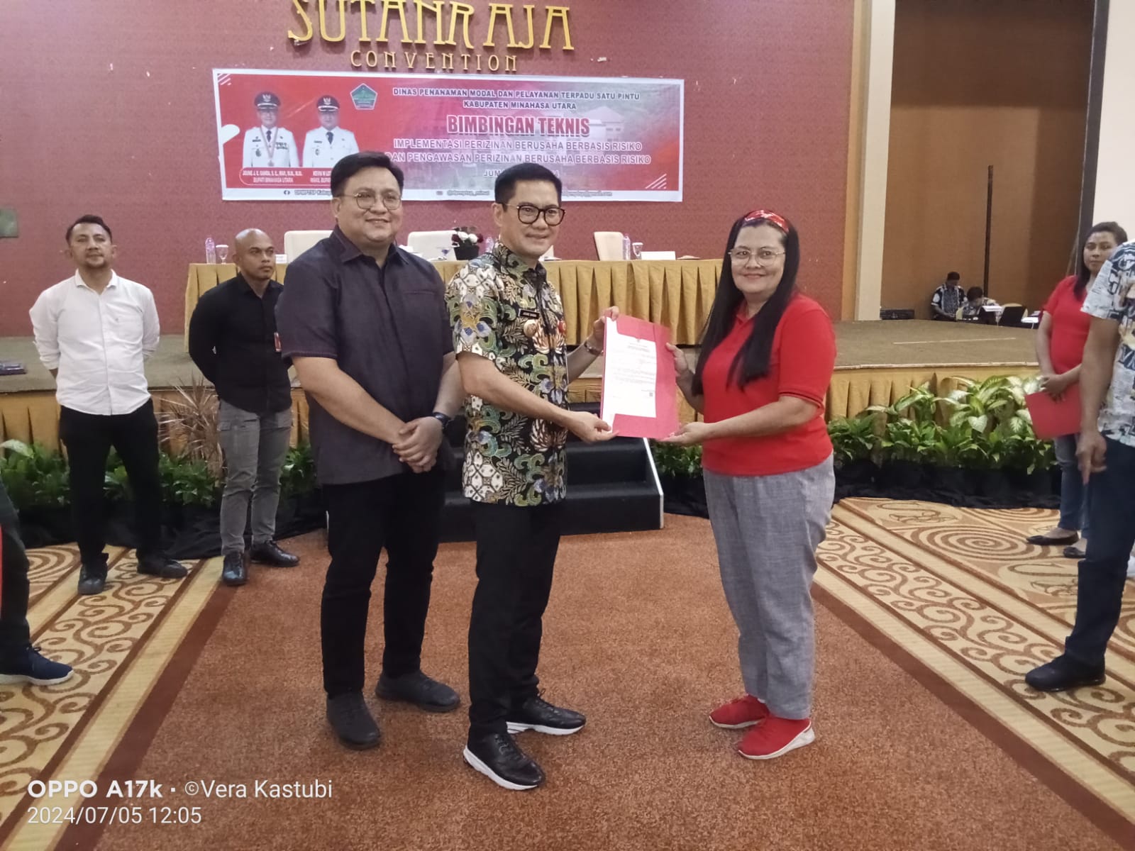 Dinas Penanaman Modal dan Pelayanan Terpadu Satu Pintu (DPMPTSP) Kabupaten Minahasa Utara (Minut), menggelar Bimbingan Teknis (Bimtek), mengenai Implementasi Perizinan Berusaha Berbasis Resiko dan Pengawasan Perizinan Berusaha Berbasis Risiko Program bagi Pelaku Usaha UMKM di Hotel Sutan Raja Kab. Minut, Jumat (05/07/2024).