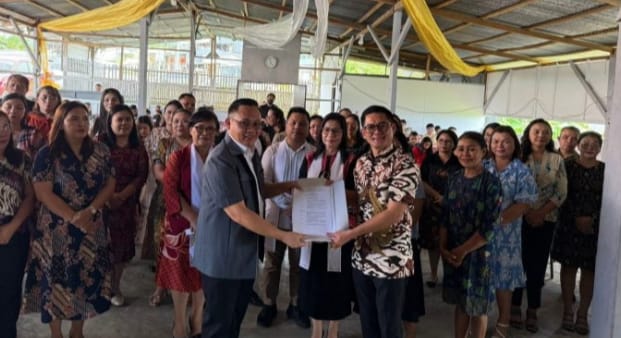 MINUT SULUTPOSTONLINE.id – Bupati Minahasa Utara, Joune Ganda, menghadiri ibadah Minggu sekaligus pelantikan Panitia Perkemahan CERIA Guru Sekolah Minggu KPA Sinode GMIM Tahun 2025 di Jemaat GMIM Rakek Eden Watudambo, Wilayah Minawerot, pada Minggu (15/06/25).