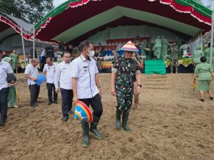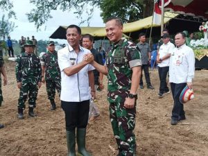 BOLMONG,SULUTPOST- Penjabat Bupati Kabupaten Bolaang Mongondow dr Jusnan Calamento Mokoginta MARS, dan Panglima Kodam (Pengdam) XIII/Merdeka bapak Mayor Jenderal (Mayjen) Candra Wijaya bersama Dandrem 131/Santiago Brigjen TNI Martin Susilo, menghadiri kegiatan pangan berupa penanaman jagung untuk peningkatan produktivitas pertanian,