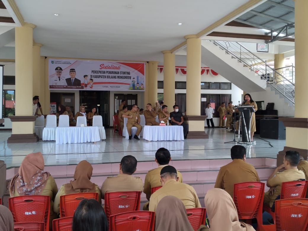 BOLMONG,SULUTPOST–Pemerintah Kabupaten Bolaang Mongondow ( Pemkab Bolmong ) bersama instansi terkait, terus melakukan terobosan dalam rangka penurunan prevalensi stunting, melalui kegiatan sosialisasi yang melibatkan semua stakeholder, tepatnya digelar dipelantara lantai 1 gedung kantor Bupati, Selasa 11 April 2023.