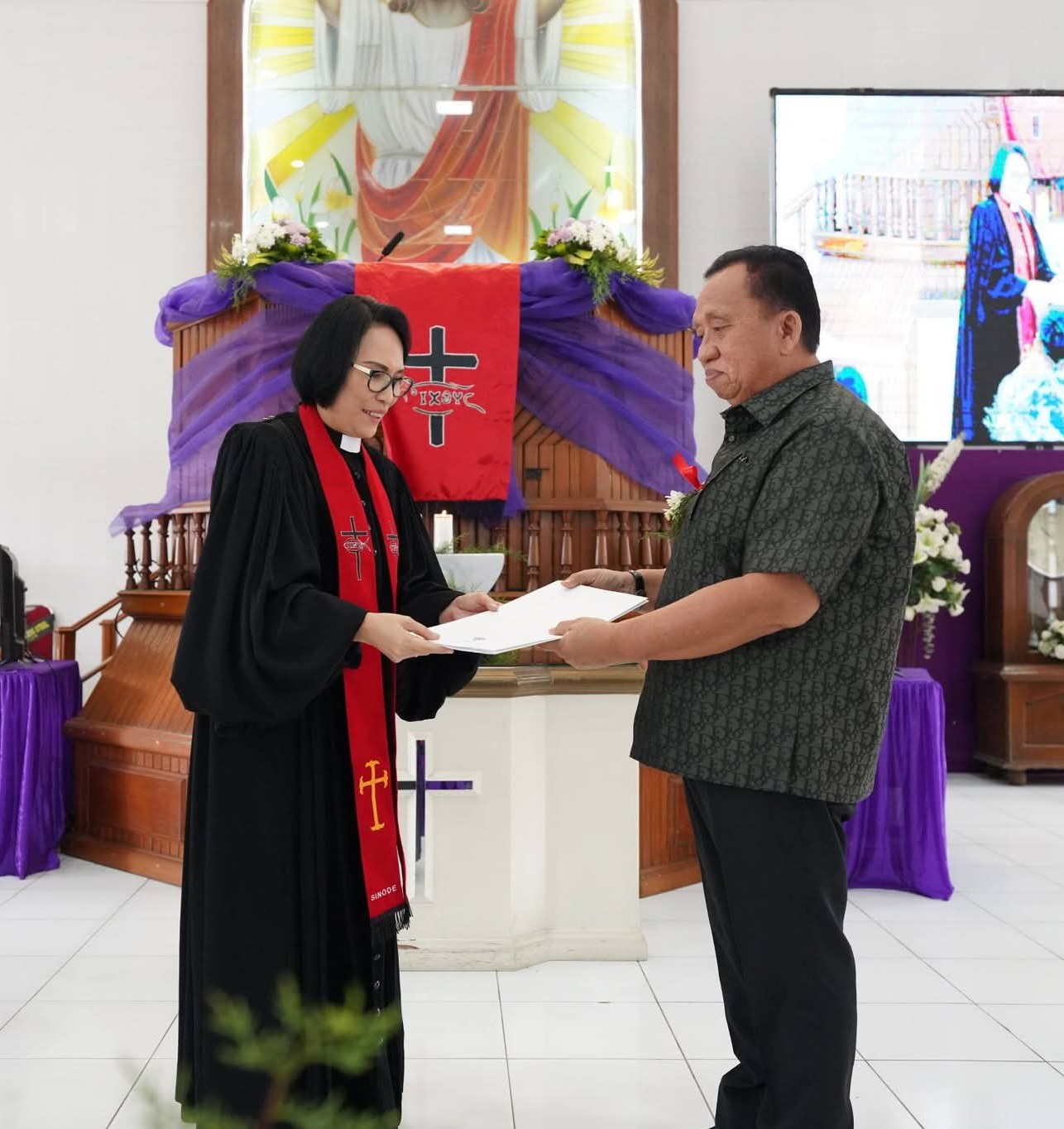 Bupati Robby Dondokambey menyampaikan rasa syukur atas kepercayaan yang diberikan serta menegaskan komitmennya untuk terus mendukung pelayanan gereja dan kehidupan kerohanian masyarakat.
