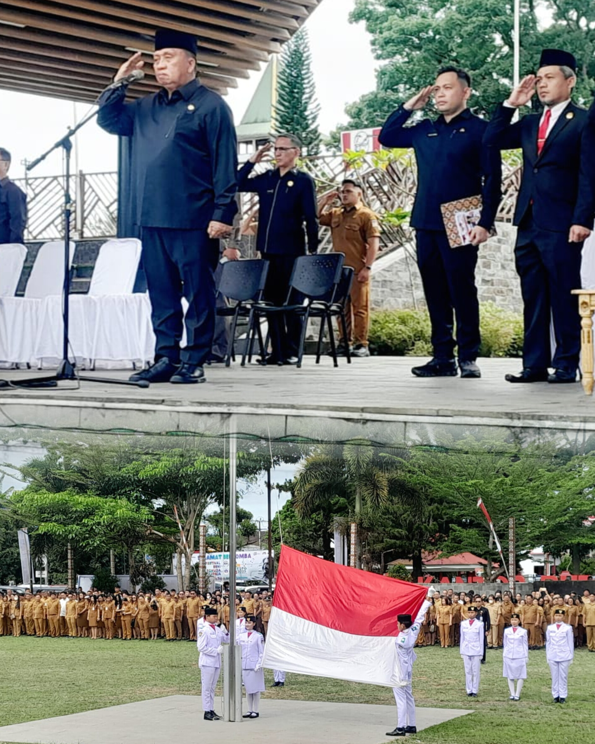 Bupati Minahasa, Robby Dondokambey S.Si., M.A.P., yang bertindak sebagai pembina upacara, dengan tegas mengingatkan pentingnya penggunaan seragam dan atribut lengkap dalam setiap upacara nasional.