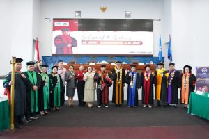 Ujian terbuka tersebut dipimpin langsung oleh Rektor UNIMA Dr. Joseph Philip Kambey, SE, Ak, MBA, bersama para guru besar dan tim penguji. Suasana akademik berlangsung khidmat namun penuh kebanggaan, terlebih karena disertasi yang diangkat menyentuh isu strategis daerah, yakni “Analisis Kualitas Pembangunan Sumber Daya Manusia di Kabupaten Minahasa”.