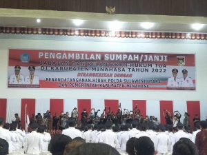 MANADO, SULUT POST – Bupati Minahasa Dr Royke Octavian Roring MSi melantik 98 Hukum Tua (Kumtua) / Kepala Desa bertempat di gedung Wale Ne Tou Tondano Kamis, 30/6/2022.