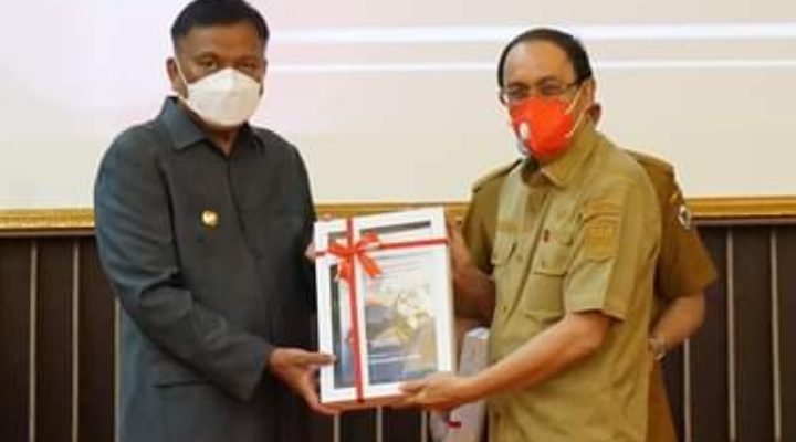 Capaian 8 Kali Berturut-turut Opini WTP pada LKPD Tahun 2021 diserahkan langsung Gubernur Sulawesi Utara Bapak Olly Dondokambey SE, di Aula Gedung Keuangan Negara (GKN) lantai 6, didampingi Kaban BPKAD, Kabag Prokopim, Senin (5/12/2022).