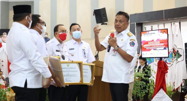 Pemberian penghargaan tersebut diberikan langsung Gubernur Sulawesi Utara, Olly Dondokambey didampingi Wagub, Drs. Steven Kandouw di selah selah kegiatan Rapat Kerja Pemerintahan Tahun 2022 Gubernur Sulawesi Utara bersama Bupati/Walikota dan Forkopimda se-Sulawesi Utara, di aula Mapalus Kantor Gubernur Sulut, Rabu (19/1/2022).