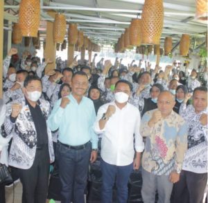 Selanjutnya, Ketua DPRD Boltim 2014-2015 ini memberikan motivasi kepada guru-guru yang hadir di acara tersebut.