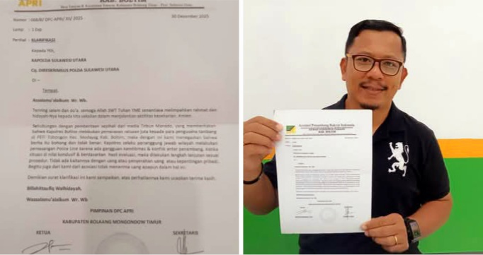 BOLTIM,SULUTPOST-Ketua Asosiasi Penambang Rakyat Indonesia (APRI) Kabupaten Bolaang Mongondow Timur (Boltim), menegaskan, bahwa tidak ada pencatutan nama Direskrimsus, maupun Kapolres Boltim, serta tidak ada permintaan uang kepada pengusaha tambang emas di Tobongon, Kecamatan Modayag (Boltim-red). Demikian hal ini ditegaskan oleh Ketua APRI Boltim Hendra Abarang S.Hut, pada awak media, Rabu (31/12/25). Dalam Keterangan Persnya, Ketua […]