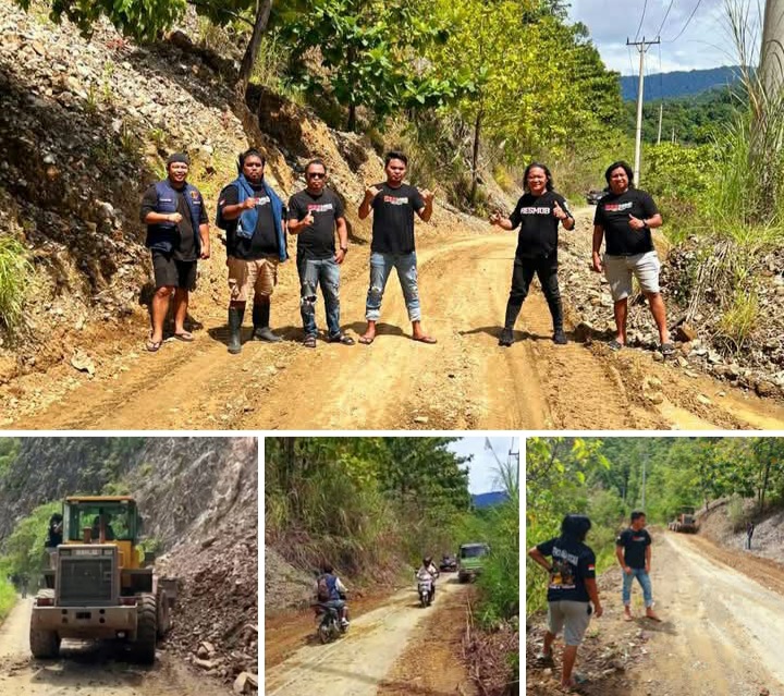 Resmob Raja Bogani Gelar Bakti Sosial Pembersihan Jalan Bekas Longsoran Batu Di Desa Totabuan