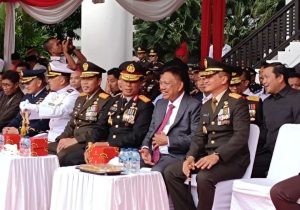 Foto: Kapolda Sulut Irjen Pol Yudhiawan SH, SIK, MH, M.S.i dan Gubernur Sulut Olly Dondokambey, dan Wakil Gubernur Sulut Steven Kandouw. pada peringatan Hut Bhayangkara ke-78  di Sulawesi Utara.