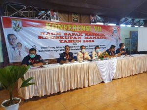 MINAHASA, SULUT POST – Bupati Minahasa Dr Royke Octavian Roring MSi menghadiri kegiatan pembukaan Konferensi ke-VII Pertemuan Raya Kaum Bapak Katolik (KBK) se-Keuskupan Manado yang digelar paroki Santu Yosep Kawangkoan, Jumat (15/7/2022) di lapangan GOR Sarundajang Kawangkoan.