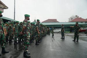 Minahasa – Hari Raya Idul Fitri 1443 H tinggal menghitung hari, Komandan Komando Distrik Militer ( Dandim ) 1302/Minahasa Letnan Kolonel ( Letkol ) Inf Ircham Effendy menggelar apel pelepasan terhadap anggota yang akan melaksanakan cuti lebaran yang dihelat dihalaman belakang Kantor Makodim jalan Manguni, Kelurahan Sasaran, Kecamatan Tondano Utara, Kabupaten Minahasa, Provinsi Sulawesi Utara pada Kamis 28/04/2022 pukul 15.00 Wita.