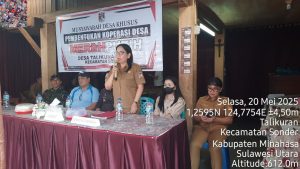 Hadir dalam pembentuan Koperasi Merah Putih di Desa Talikuran Satu Kecamatan Sonder Kabupaten Minahasa tersebut, Camat Sonder Diani A. Dien SSTP.,M.Si, Sekcam, Kasie Pemerintahan Kecamatan Sonder, tenaga ahli Pemberdayaan Masyarakat Kabupaten Minahasa, Babinsa, BPD, Perangkat Desa, pendamping lokal desa, dan para pemilih Koperasi Merah Putih 55 orang.