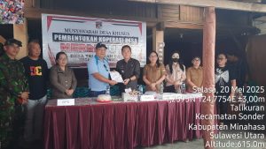 MINAHASA, SULUTPOSTONLINE.id – Desa Talikuran Satu menggelar Musyawarah Desa Khusus (Musdessus) untuk pembentukan Koperasi Merah Putih. Musyawarah diselenggarakan di Rumah Hukum Tua (kantor desa sementara), Selasa (20/05/2025).