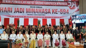 MINAHASA, SULUTPOSTONLINE.ID – Bupati Minahasa Dr. Ir. Royke Octavian Roring, MSi,, bersama Ketua TP-PKK Kabupaten Minahasa Dra. Fenny Ch. Roring – Lumanauw, SIP dan Wakil Bupati Minahasa Dr. (H.C) Robby Dondokambey, SSi MM (RD) bersama Wakil Ketua TP-PKK Kabupaten Minahasa Martina Dondokambey Lengkong, SE mengikuti Rapat Paripurna DPRD Kabupaten Minahasa dalam Rangka Peringatan Hari Jadi Minahasa ke-594 Tahun 2022 di Gedung Wale Ne Tou Tondano, dihadiri langsung oleh Gubernur Sulawesi Utara, Olly Dondokambey, SE didampingi Ketua TP-PKK Provinsi Sulut Ir. Rita Dondokambey-Tamuntuan dan Wakil Gubernur Sulawesi Utara, Drs. Steven Kandouw didampingi Sekretaris TP-PKK, dr. Kartika Devi Kandouw-Tanos, MARS. Sabtu (5/11/2022).