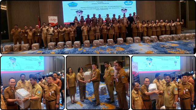 Pemerintah Kabupaten Minahasa Utara (Minut) melalui Dinas Pendidikan menyalurkan bantuan Teknologi Informasi dan Komunikasi (TIK) sebanyak 2631 Chrombook kepada 155 SD Swasta, SMP Swasta dan Negeri, sekaligus menggelar pelatihan penggunaan Chrome, digelar di Ballroom The Sentra Hotel, Senin (24/07/2023).