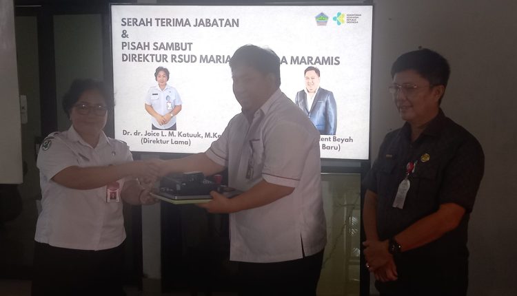 MINUT, SULUTPOSTonline.id – Rumah Sakit Umum Daerah (RSUD) Maria Walanda Maramis (MWM) menggelar sertijab dan pisah sambut dari Direktur Dr.dr. Joice L. M. Katuuk, M.Kes kepada dr. Alain Vincent Beyah selaku Direktur yang baru, Rabu (27/03/24).