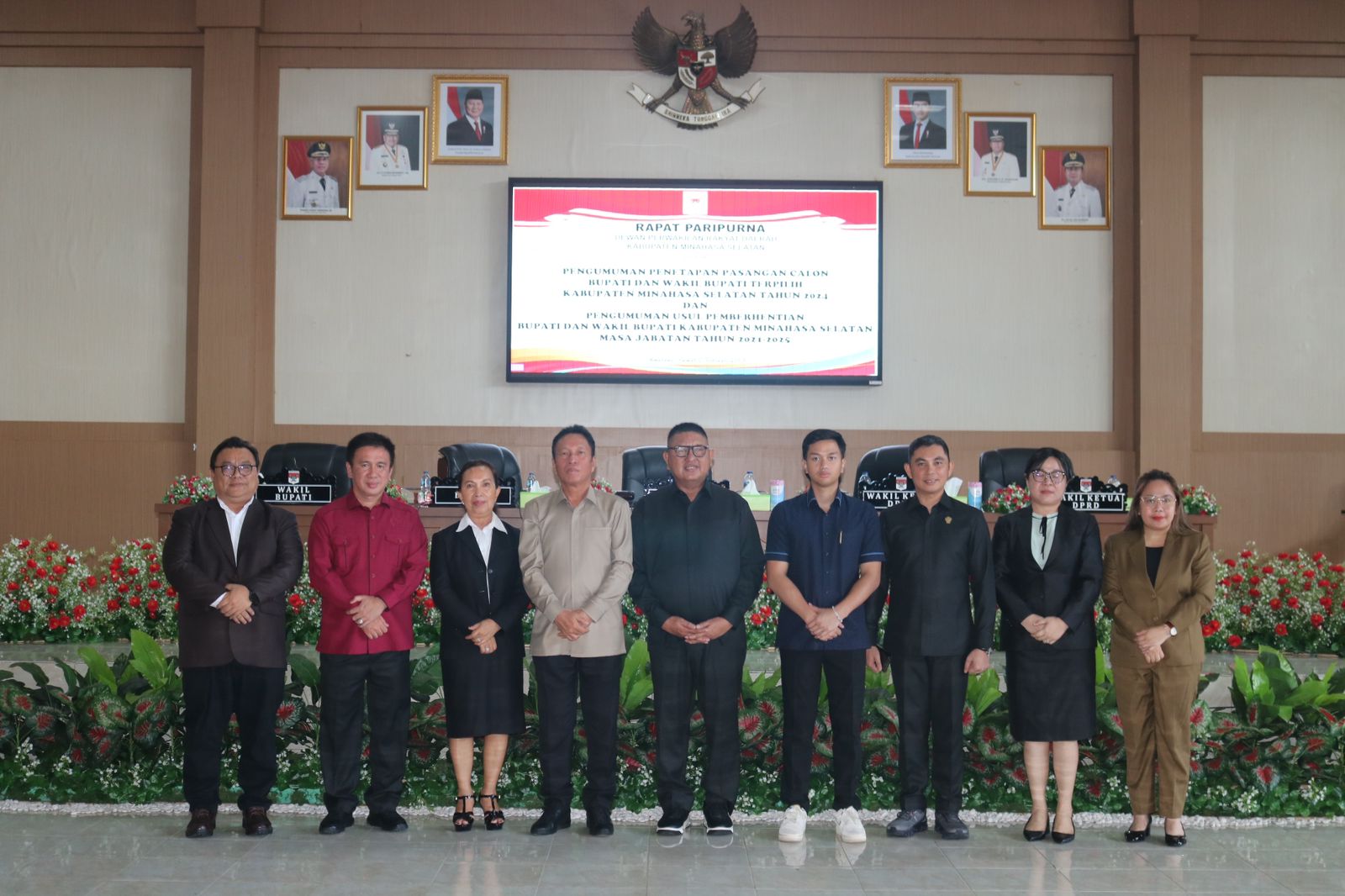 Pelaksanaan Rapat Paripurna tersebut merupakan instrumen yang wajib dilaksanakan oleh pihak Legislatif setelah adanya penetapan pasangan calon Bupati dan Wakil Bupati terpilih Kabupaten Minahasa Selatan, oleh KPU Kabupaten Minahasa Selatan yang tertuang dalam berita acara Nomor 19/Pl.02.7-Ba/7105/2/2025 dan Keputusan KPU Kabupaten Minahasa Selatan Nomor 7 Tahun 2025 tentang penetapan pasangan calon Bupati dan Wakil Bupati terpilih Kabupaten Minahasa Selatan Tahun 2024, serta adanya putusan Mahkamah Konstitusi Republik Indonesia Nomor 118/Phpu.Bup-Xxiii/2025. Yang kemudian pihak Legislatif akan menyampaikan Dokumen penetapan Kepada Menteri Dalam Negeri Republik Indonesia Melalui Gubernur Provinsi Sulawesi Utara.