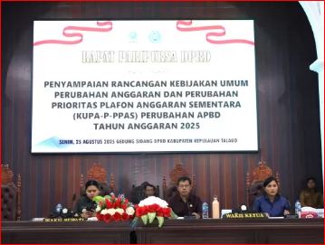 TALAUD SULUT POST – DPRD Kabupaten Kabupaten Kepulauan Talaud menggelar Rapat Paripurna Penyampaian Rancangan Kebijakan Umum Perubahan Anggaran (KUPA) dan Rancangan Perubahan Plafon Anggaran Sememtara (P – PPAS) Tahun Anggaran 2025, di Gedung Rapat DPRR Talaud pada Senin, (25/8/2025) Pukul 13.00 Wita Kemarin.