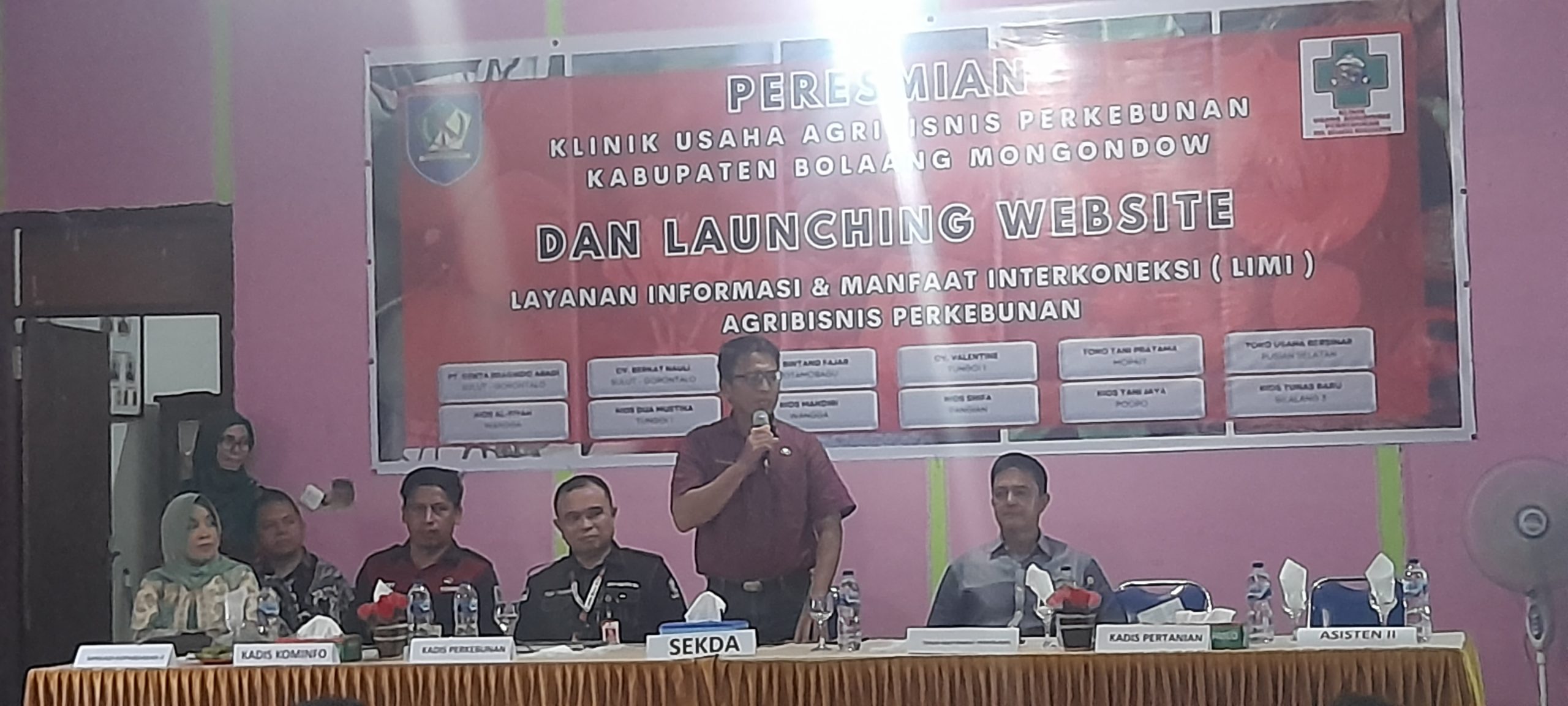 Mewakili Penjabat Bupati Bolmong, Tahlis Gallang S.I.P, dalam sambutannya menyampaikan, bahwa peresmian Klinik Agribisnis Perkebunan dan Website “LIMI’ adalah bentuk pelayanan dan inovasi baru aduh gagasan yang kemudian jika ini berjalan baik, maka bisa pula dijadikan sebagai contoj dan digunakan secara nasional oleh pemerintah pusat di dalam memberikan kemudahan bagi para petani maupun pelaku usaha yang ada.