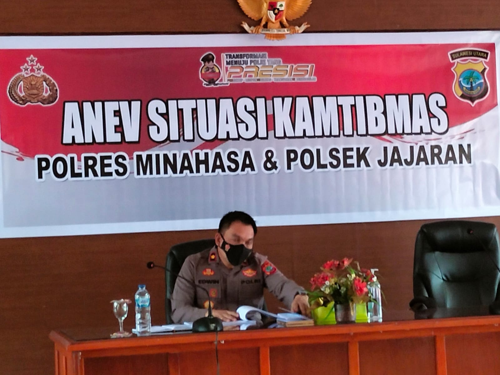 MINAHASA, SULUT POST – Waka Polres Minahasa Kompol Adi Edwin Hariawang, pimpin langsung Kegiatan Anev Kamtibmas Polres Minahasa dan Polsek JajaranRabu (23/11/2021) pukul 09.00 wita bertempat di ruangan Aula Maesa Mako Polres Tondano dengan menerapkan protokol kesehatan.
