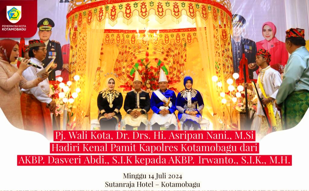 Sekaligus ucap Wali Kota, dalam kesempatan yang berbahagia malam hari ini, saya atas nama pribadi, atas nama keluarga, atas nama Pemerintah Daerah, dan perkenankan saya atas nama Forkopimda, seluruh masyarakat Kota Kotamobagu menyambut kedatangan yang terhormat, Bapak. AKBP. Irwanto., S.I.K., M.H bersama Keluarga di Kota Kotamobagu, dalam bahasa daerah “Dega Niondon Komintan,”.