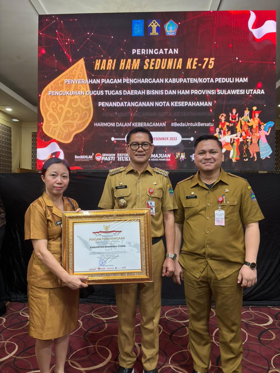 Penghargaan Kabupaten Peduli HAM diberikan oleh kementerian Hukum dan HAM RI yang diserahkan langsung oleh Gubernur Provinsi Sulawesi Utara Olly Dondokambey SE.