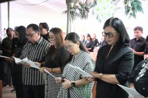 Minahasa SULUTPOST – Bupati Minahasa Robby Dondokambey, SSi, MAP bersama Ketua TP-PKK Kabupaten Minahasa Ny. Martina Dondokambey-Lengkong, SE, Wakil Bupati Minahasa Vanda Sarundajang, SS, serta Sekretaris Daerah Kabupaten Minahasa Dr. Lynda D. Watania, MM, M.Si menghadiri ibadah pemakaman Almarhumah Florencia Lolita Wibisono, Sabtu (24/1/2026).