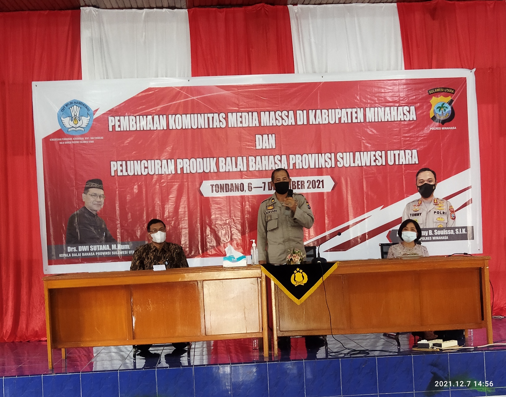 MINAHASA, SULUT POST – Pembinaan komunitas media massa dan peluncuran produk balai bahasa Provinsi Sulawesi Utara ditutup oleh Kasi Humas Polres IPTU Johan Rantung, Selasa (7/12/2021) kemarin di Ruang Tansatrisna Polres Minahasa.