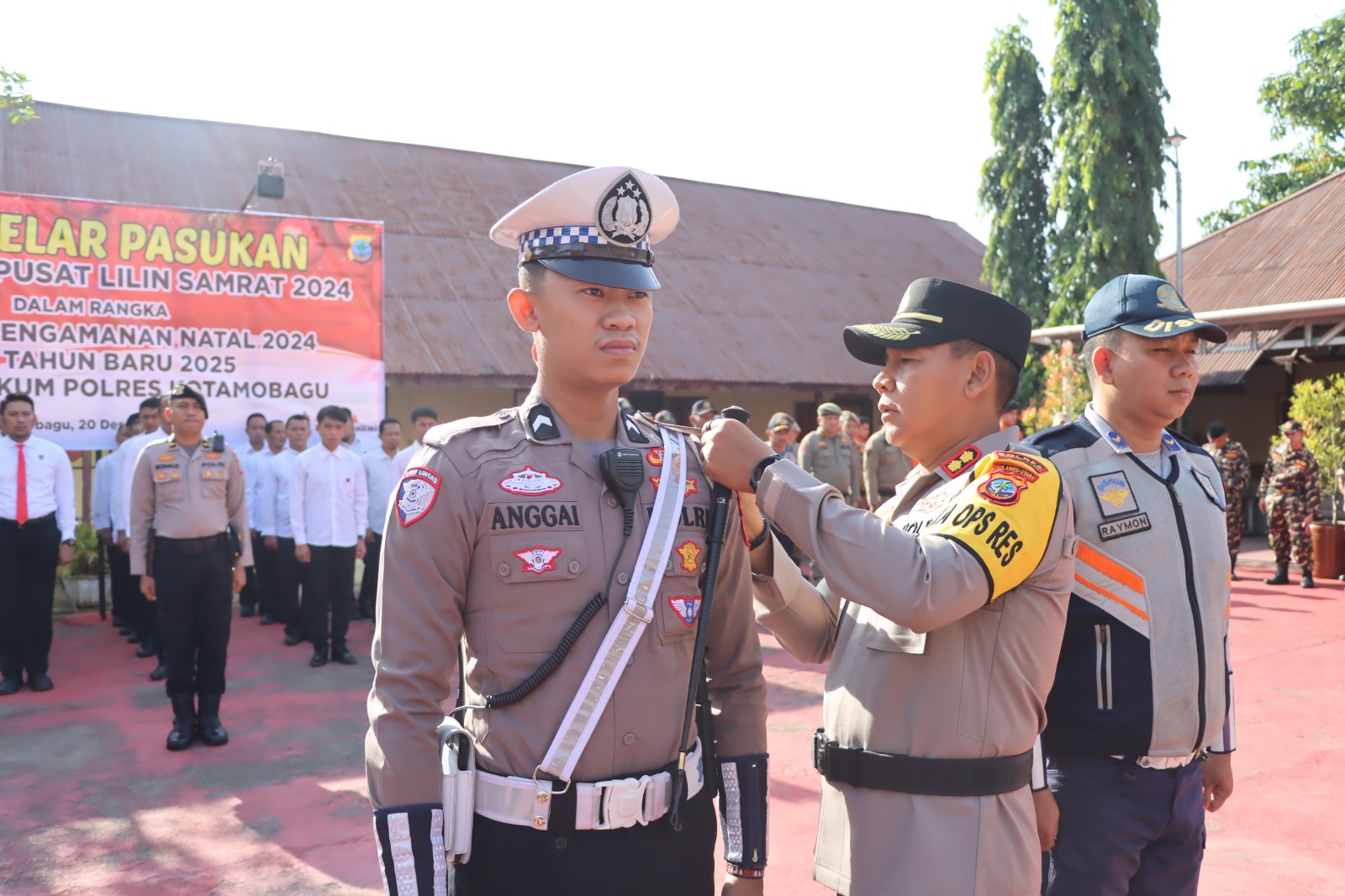 KOTAMOBAGU,SULUTPOST- Sebagai bentuk kesiapan dalam rangka menghadapi pengamanan Natal 25 Desember 2024 dan Tahun Baru 2025, Polres Kotamobagu melaksanakan apel gelar pasukan operasi terpusat lilin Samrat 2024 di lapangan apel Mapolres Kotamobagu, Jumat (20/12/2024).