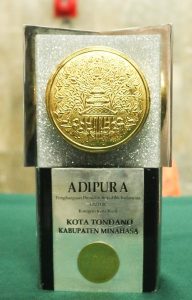 Penghargaan dalam bentuk Piala Adipura kategori kota kecil tahun 2022 ini diterima oleh Bupati Minahasa Dr. Ir. Royke Octavian Roring, MSi, diberikan langsung oleh Menteri Lingkngan Hidup dan Kehutanan (LHK), Siti Nurbaya, Selasa (28/2/2023), di Auditorium Manggala Wana Bhakti Jakarta.