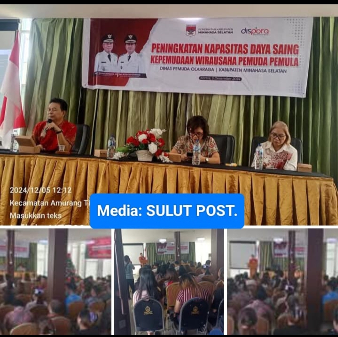 Kegiatan berlangsung di Villa Sutanraja, tepatnya di Kelurahan Pondang Kecamatan Amurang Timur, Kamis 5-12-2024, dan diisi dengan seminar bertema “Peningkatan Kapasitas Daya Saing Kepemudaan Wirausaha Pemuda Pemula”.