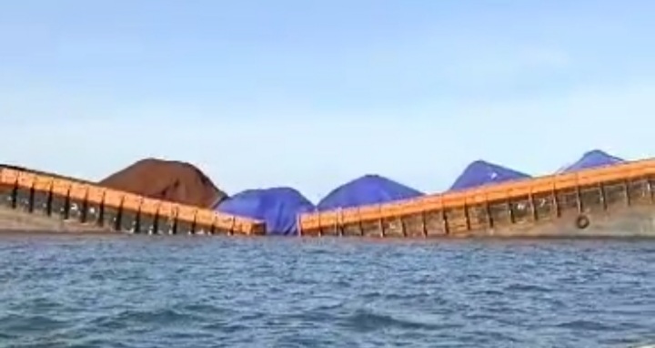 “Ia pak ada kapal tongkang bermuatan matrial tanah menuju antrian sandar bongkar muatan di PT CONCH Bolmong mengalami musibah, dimana badan kapal tongkang tersebut mengalami patah dibagian tengah. tapi, alhamdulilah matrialnya belum jatuh kelaut, karena kondisi patah di badan kapal itu tidak menyeluruh, dan masih bisa manahan beban matrial yang ada,”jawab Edwin Maengkong.