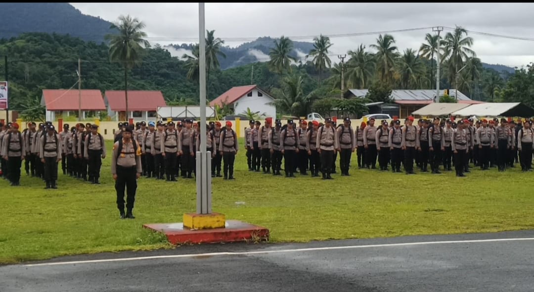 Bertindak selalu Pimpinan Apel Kapolres Bolmong AKBP Arianto Salkery, SH., MH dan dihadiri unsur Forkopimda dan instansi terkait serta seluruh personel yang akan bertugas di TPS.