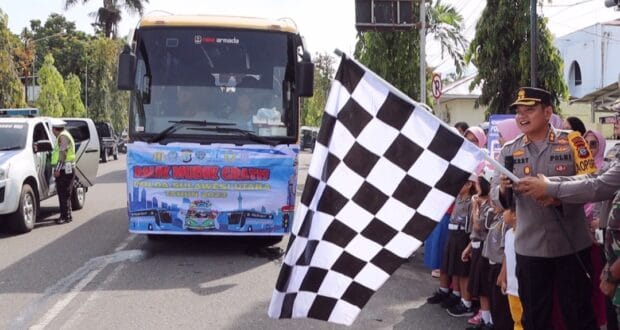 Kapolres Kotamobagu Melepas Bus Balik Mudik Gratis Bagi Masyarakat